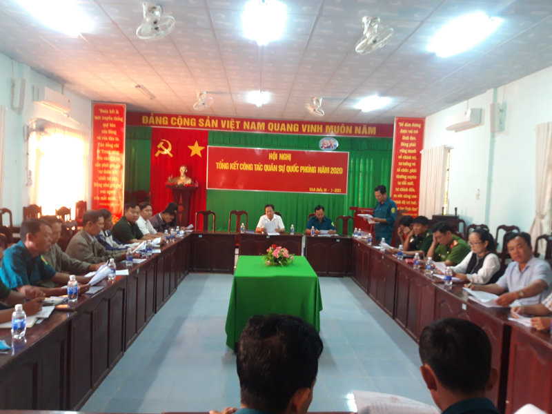 Trong năm đã quán triệt, triển khai thực hiện nghiêm túc các Chỉ thị, mệnh lệnh của Quân khu, Bộ CHQS tỉnh, duy trì nghiêm chế độ trực sẵng sàng chiến đấu theo chỉ lệnh, hướng dẫn, quy định của trên, bảo vệ an toàn các ngày lễ, tết trong năm. Phối hợp với Công an, Đồn Biên phòng thực hiện nghiêm quy chế hoạt động theo Nghị định số 03/2019/NĐ-CP; Nghị định 133/NĐ-CP (nay Nghị định 02), hội ý và tổ chức giao ban hàng tháng theo quy định; thống nhất nội dung, biện pháp thực hiện và chỉ đạo lực lượng tổ chức tuần tra tuyến biên giới và nội địa. Góp phần giữ vững ANCT-TTXH trên địa bàn. Tham mưu UBD xã xây dựng Kế hoạch giáo dục quốc phòng và an ninh. Phối hợp với Mặt trận, các ban ngành đoàn thể xã tuyên truyền sâu rộng trong cán bộ, đảng viên, công chức, viên chức và các tầng lớp nhân dân, lồng ghép vào các buổi sinh hoạt chi, tổ hội và các cuộc họp cơ quan; khảo sát và lập danh sách đưa đi trung tâm bồi dưỡng chi1h trị huyện để bồi dưỡng kiến thức quốc phòng và an ninh đối tượng 4 theo kế hoạch. Tổ chức giao quân 7/7 đạt chỉ tiêu. Tổ chức kết chiến sĩ dân quân mới đạt chỉ tiêu xây dựng dân quân, giao chỉ tiêu tập huấn, huấn luyện dân quân năm 2020; phúc tra, nắm nguồn công dân trong độ tuổi DQTV; sắp xếp biên chế các đối tượng đúng quy định; xây dựng kế hoạch huấn luyện theo sát phù hợp với địa bàn, tổ chức huấn luyện đúng theo phương châm “cơ bản, thiết thực, chất lượng” đảm bảo đúng nội dung, chương trình và thời gian quy định. Qua kiểm tra công tác huấn luyện có 100% đạt yêu cầu, trong đó có 75% khá, giỏi trở lên, bồi dưỡng kiến thức quốc phòng và an ninh đạt chỉ tiêu. Xây dựng lực lượng dân quân đạt 2,32% so với dân số cho ra hoàn thành 13 đồng chí, kết nạp mới 16 đồng chí, tỷ lệ đảng viên đạt 21,47% so với lực lượng. Tổ chức kết nạp, giải ngạch, bổ nhiệm, bãi nhiệm theo Luật DQTV.