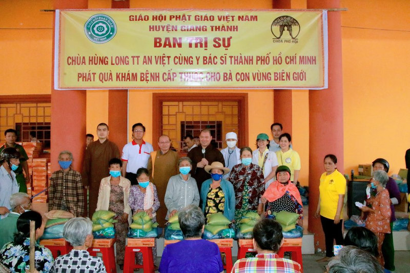 Tại buổi trao quà Đại Đức Thích Tuệ Giải - Ủy viên Thường trực Ban Trị sự - Trưởng ban từ thiện xã hội Giáo hội Phật giáo Việt Nam tỉnh gửi lời hỏi thăm sức khoẻ đến bà con, động viên mọi người cố gắng làm ăn vượt khó thoát nghèo vươn lên trong cuộc sống. Đại Đức mong rằng quý bà con trên địa bàn biên giới nỗ lực đoàn kết đồng hành cùng chính quyền xây dựng nông thôn mới vùng biên giới ngày càng giàu đẹp văn minh phát triển. Đồng thời gửi lời tri ân đến quý cấp chính quyền đã quan tâm, tạo điều kiện và kết hợp chặt chẽ với Giáo hội trong mọi công tác từ thiện xuyên suốt nhiều năm qua, nhất là trong Đại dịch Covid-19 và chuyến từ thiện ngày hôm nay, từ việc phát phiếu, hỗ trợ người dân đến khám bệnh, nhận quà, hỗ trợ an ninh trật tự.