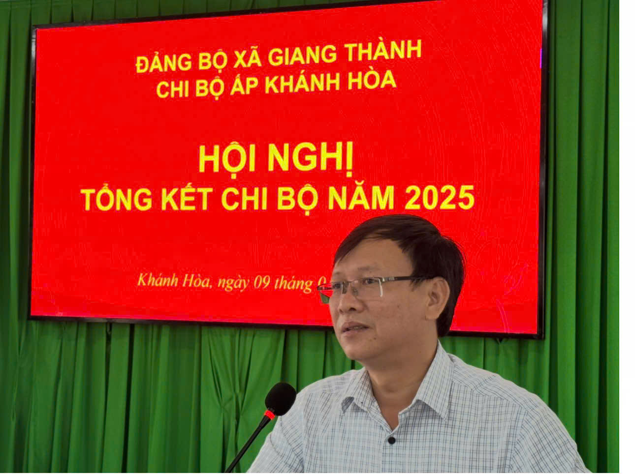 Ngày 09/01/2026 Chi bộ ấp Khánh Hòa (xã Giang Thành) tổ chức Hội nghị tổng kết năm 2025, triển khai nghị quyết lãnh đạo thực hiện nhiệm vụ năm 2026. Dự và chỉ đạo Hội nghị có Đồng chí Võ Văn Bình, Phó Bí thư Thường trực Đảng ủy - Chủ tịch HĐND xã; các đồng chí thành viên tổ công tác xã. Phía Chi bộ có đồng chí Trần Ngọc Dẩn, Bí thư Chi bộ ấp Khánh Hòa; cùng tham dự có các đồng chí đảng viên chi bộ về dự hội nghị tổng kết năm 2025.