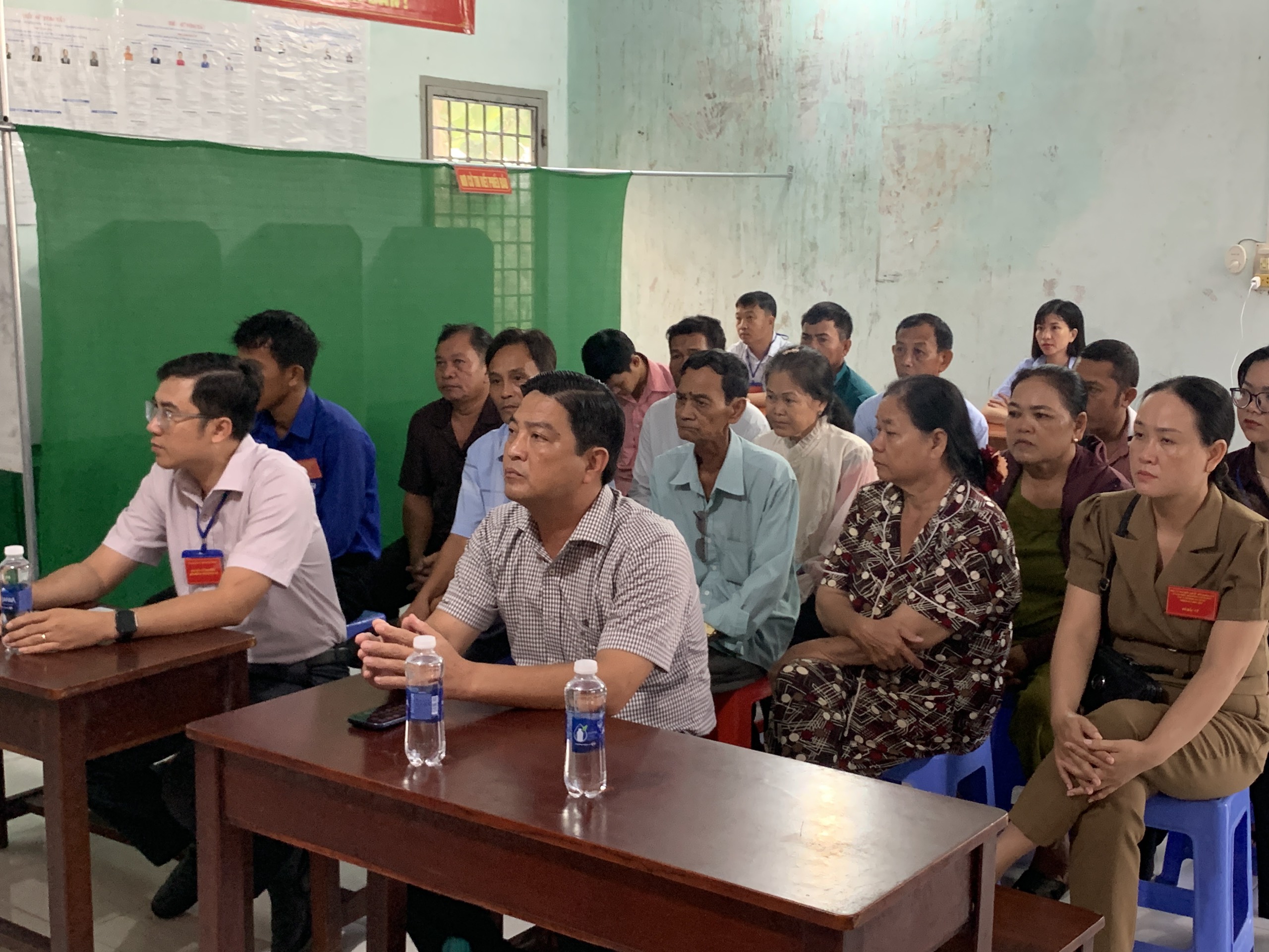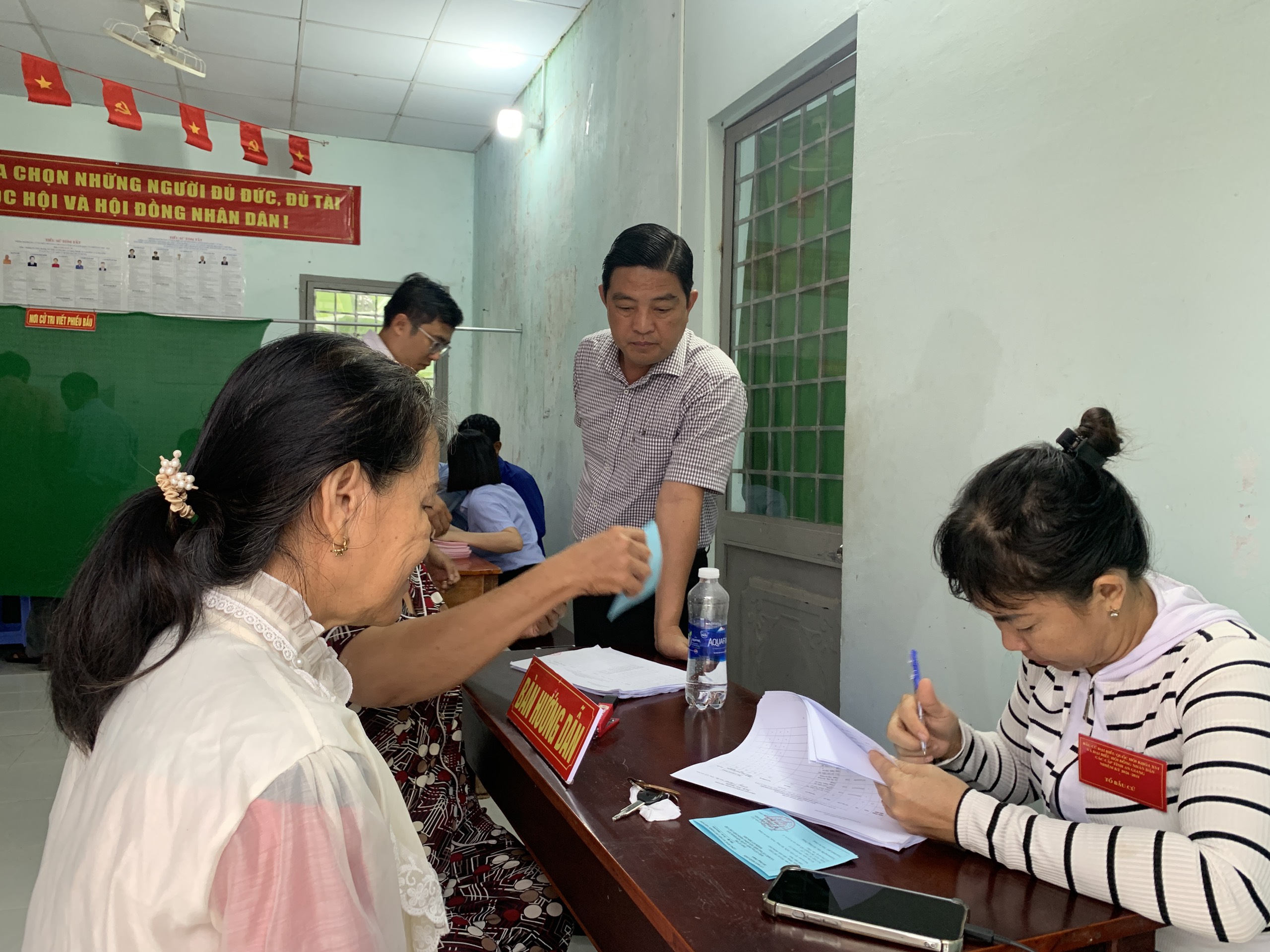 Đồng chí Tạ Hiệp - Phó Bí thư Đảng ủy, Chủ tịch UBND xã Giang Thành dự lễ khai mạc tại khu vực bỏ phiếu số 22 - Trụ sở nhà văn hóa ấp Tân Tiến