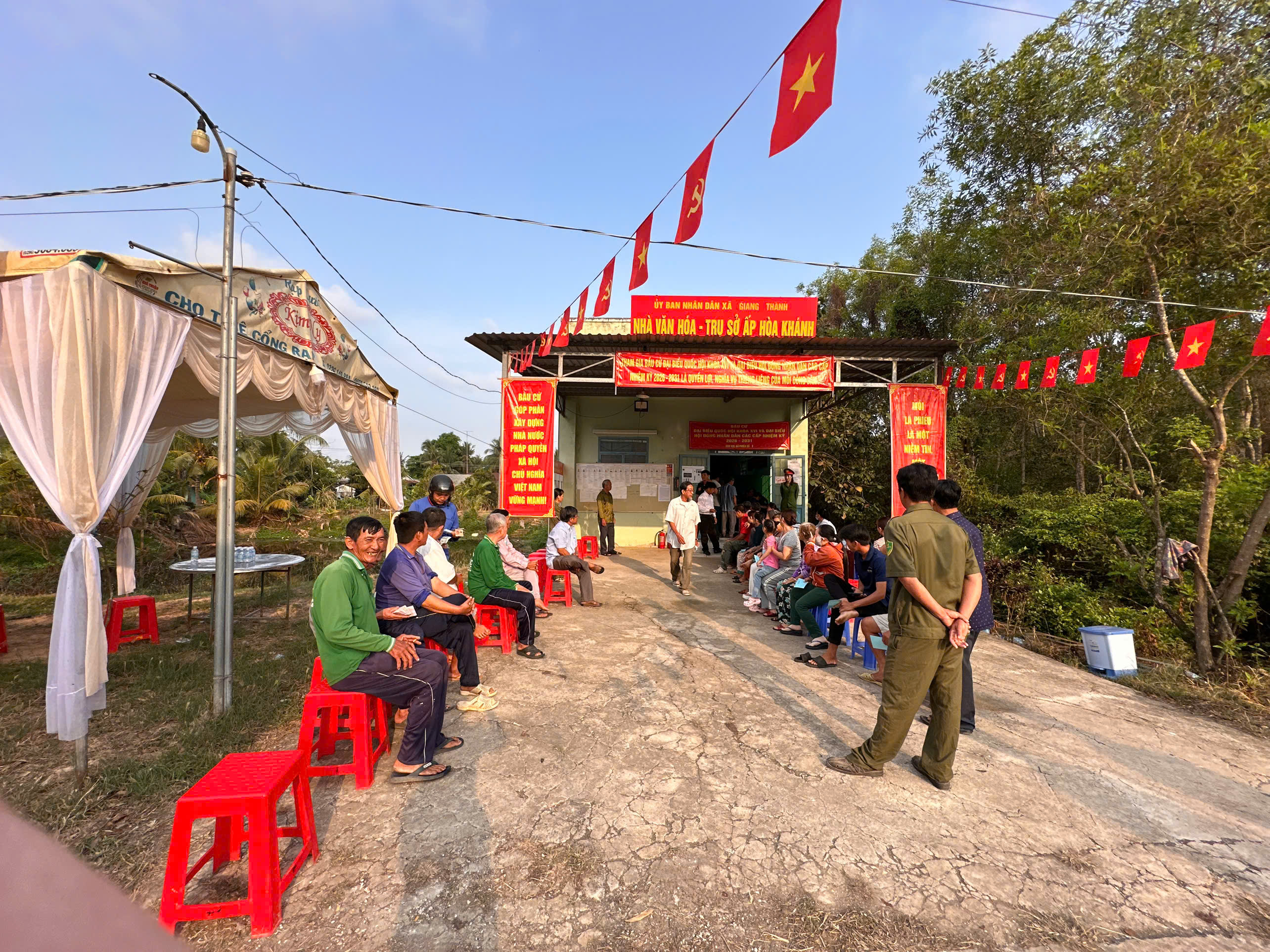 Hòa chung không khí sôi nổi của ngày hội lớn của toàn dân, sáng ngày 15/3, 06 đơn vị bầu cử với 25 khu vực bỏ phiếu trên địa bàn 18 ấp của xã Giang Thành, đông đảo bà con cử tri rất phấn khởi và nô nức đến các khu vực bỏ phiếu để thực hiện quyền và nghĩa vụ công dân, tham gia bầu cử đại biểu Quốc hội khóa XVI và đại biểu Hội đồng nhân dân các cấp nhiệm kỳ 2026 – 2031.