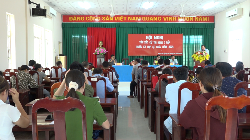 Tại buổi tiếp xúc, đại diện Đại biểu HĐND 03 cấp thông báo thời gian, địa điểm và nội dung tổ chức kỳ họp thường lệ giữa năm 2024, nhiệm kỳ 2021 – 2026. Sau khi nghe đại diện đại biểu HĐND 03 cấp, thông báo thời gian địa điểm và nội dung tổ chức kỳ họp thường lệ giữa năm 2024. Bà con cử tri trên địa bàn xã Phú Lợi củng đã có nhiều ý kiến, kiến nghị xung quanh các vấn đề về phát triển kinh tế - Văn hóa – Xã hội ở địa phương, cử tri kiến nghị ngành chức năng quan tâm tạo điều kiện dẫn nguồn nước máy để nhân dân sử dụng, hiện nay đường HN3 trên địa bàn ấp Tà Teng xuống cấp sụp lúng rất sâu thường xảy ra tai nạn cần được xem xét sữa chửa.