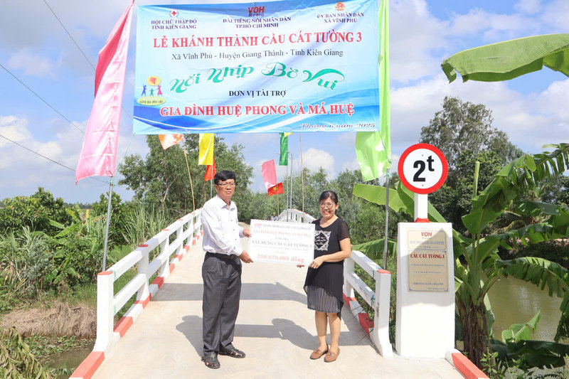 Dịp này, Hội chữ thập đỏ tỉnh Kiên Giang đã trao tặng giấy biểu dương tấm long vàng cho các nhà tài trợ có thành tích đóng góp xây dựng cầu; Các mạnh thường quân đã tặng 20 suất quà (mỗi suất quà trị giá 270 ngàn đồng) cho các hộ gia đình khó khăn trên địa bàn ấp.