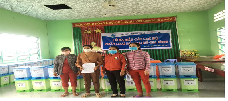 Trao quyết định và trao thùng rác cho các hộ gia đình tham gia CLB”