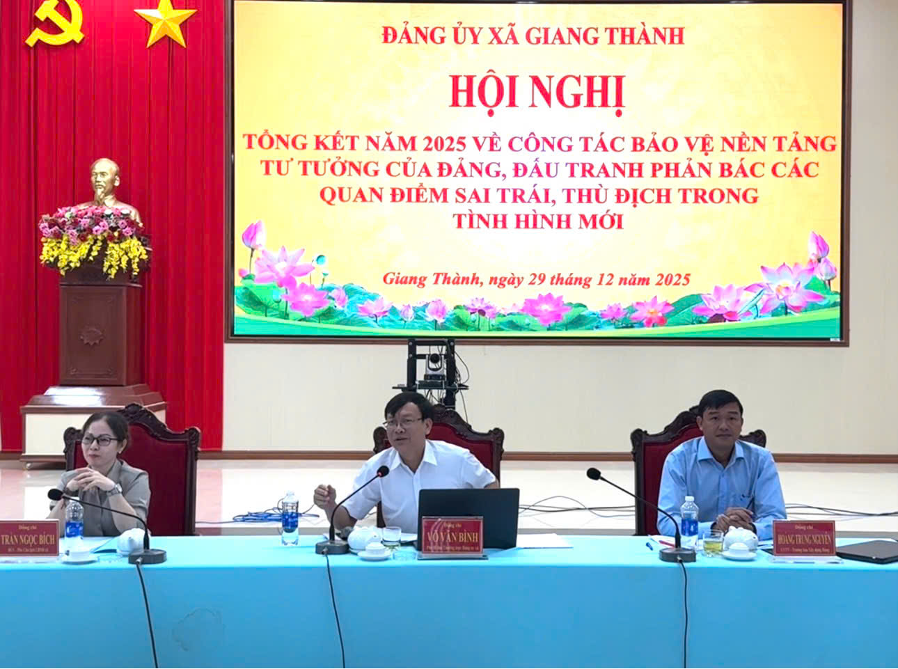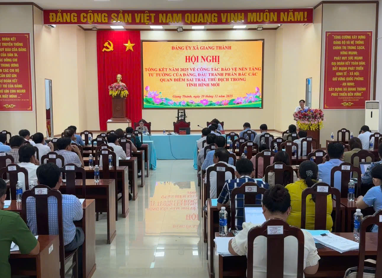 Sáng ngày 29/12/2025, Ban Công tác 35 Đảng ủy xã Giang Thành tổ chức hội nghị tổng kết công tác bảo vệ nền tảng tư tưởng của Đảng, đấu tranh phản bác các quan điểm sai trái, thù địch năm 2025 gắn với hội nghị giao ban ANTT Quý IV năm 2025.