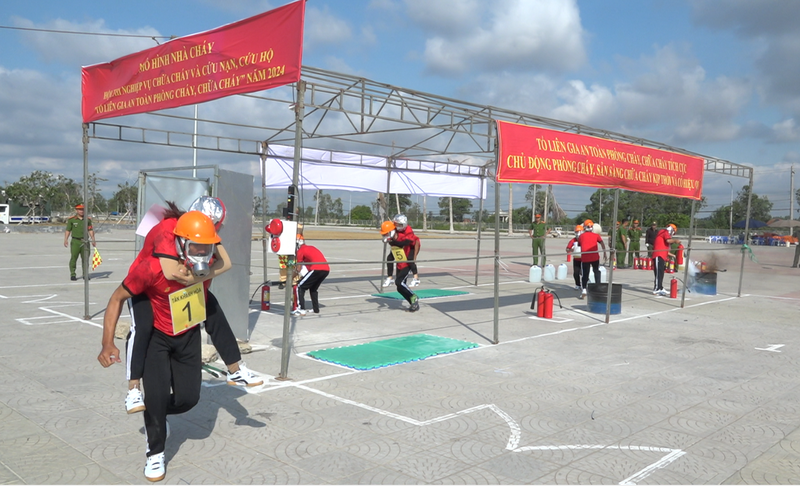 Tham gia hội thi có 04 đội, với 40 vận động viên là thành viên các tổ liên gia trên địa bàn 04 xã, Tân Khánh Hòa, Vĩnh Phú, Vĩnh Điều và Phú Mỹ. Các đội lần lượt trãi qua 02 phần thi như: Lý thuyết trả lời câu hỏi về kiến thức PCCC và CNCH; Thực hành chữa cháy cứu người và di chuyển tài sản đối với loại hình nhà để ở kết hợp sản xuất, kinh doanh.