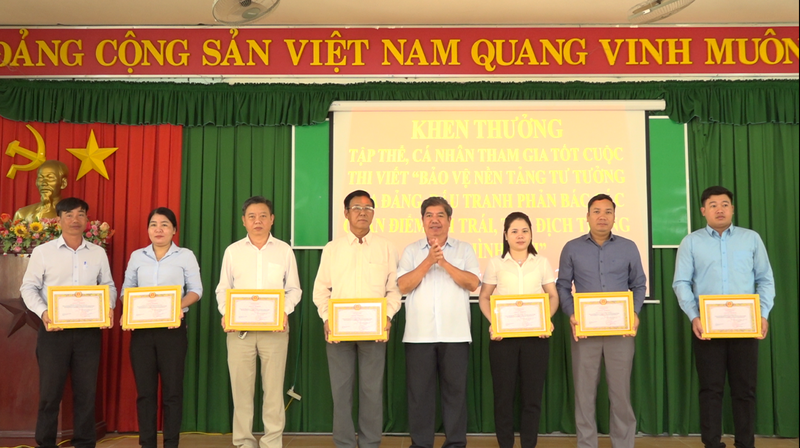 Dịp này, Ban Thường vụ Huyện ủy Giang Thành tặng giấy khen cho 3 tập thể và 12 cá nhân tham gia thực hiện tốt công tác bảo vệ nền tảng tư tưởng của Đảng, đấu tranh phản bác các quan điểm sai trái, thù địch năm 2022; tặng giấy khen 8 tập thể có nhiều bài dự thi và 10 cá nhân có bài dự thi đạt chất lượng tốt trong cuộc thi “Bảo vệ nền tảng tư tưởng của Đảng, đấu tranh phản bác các quan điểm sai trái, thù địch trong tình hình mới”.