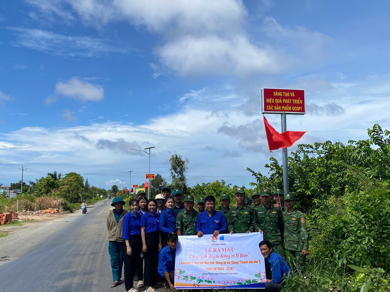 Trong không khí rộn ràng chào mừng Đại hội Đại biểu Đảng bộ xã Giang Thành lần thứ I, nhiệm kỳ 2025 – 2030. Mô hình được BTV Xã đoàn xây dựng thực hiện nhằm chào mừng sự kiện chính trị quan trọng của xã nhà và góp phần tuyên truyền đến đoàn viên thanh niên và các tầng lớp nhân dân thực hiện nghiêm túc việc treo cờ Tổ quốc vào các ngày lễ, tết, những sự kiện quan trọng của đất nước; thể hiện nét đẹp văn hóa, lòng yêu nước và tự tôn dân tộc. Tuyến đường dài khoảng 3km với hơn 50 lá cờ được treo lên. Mô hình được bàn giao lại cho Ban lãnh đạo ấp và Chi đoàn ấp Cả Ngay quản lý và bảo quản.