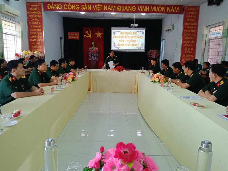 Nhân dịp Tết cổ truyền Quý Mão 2023, ngày 4/1/2023, Đoàn cán bộ Bộ Tư lệnh Quân khu 9 do Thiếu tướng Nguyễn Văn Tiền – Phó Tư lệnh Quân khu làm trưởng đoàn đã đến thăm, chúc tết Ban chỉ huy quân sự huyện, Ban chỉ huy quân sự 5 xã, các chốt dân quân trên địa bàn huyện Giang Thành.