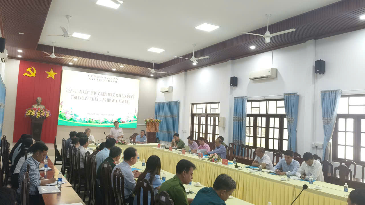 Kết luận buổi khảo sát và kiểm tra, đồng chí Phó Chủ tịch Uỷ ban Mặt trận Tổ quốc Việt Nam tỉnh, Trưởng Ban bầu cử đại biểu Quốc hội khoá XVI ở đơn vị bầu cử số 5 ghi nhận và đánh giá cao tinh thần chủ động, nghiêm túc của xã Giang Thành, xã Vĩnh Điều trong công tác bầu cử đại biểu Quốc hội khoá XVI và đại biểu Hội đồng nhân dân các cấp nhiệm kỳ 2026-2031.