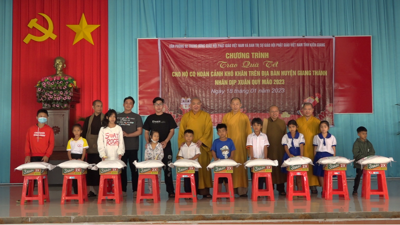 Sáng ngày 18/01/2023, Văn phòng 2 Trung ương, Giáo hội Phật giáo Việt Nam và Ban trị sự Giáo hội Phật giáo Việt Nam tỉnh Kiên Giang phối hợp với Uỷ ban Mặt trận Tổ quốc huyện Giang Thành tổ chức đoàn đến trao quà tết cho người dân trên địa bàn huyện Giang Thành nhân dịp xuân Quý Mão năm 2023.