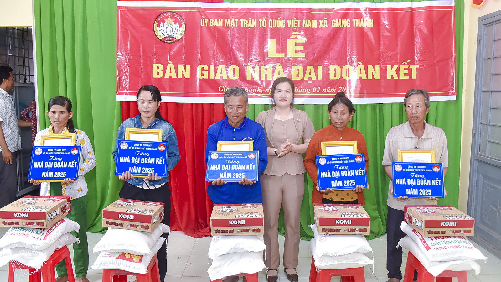 Ủy ban MTTQ Việt Nam xã Giang Thành bàn giao nhà cho 5 hộ dân Tiên Linh và Tiên Dinh, cùng ngụ ấp Trần Thệ; Lê Văn Bé, ngụ ấp Thuận Án; Thị Nét, ngụ ấp Tiên Khánh; Tiên Đôl, ngụ ấp Trà Phọt.