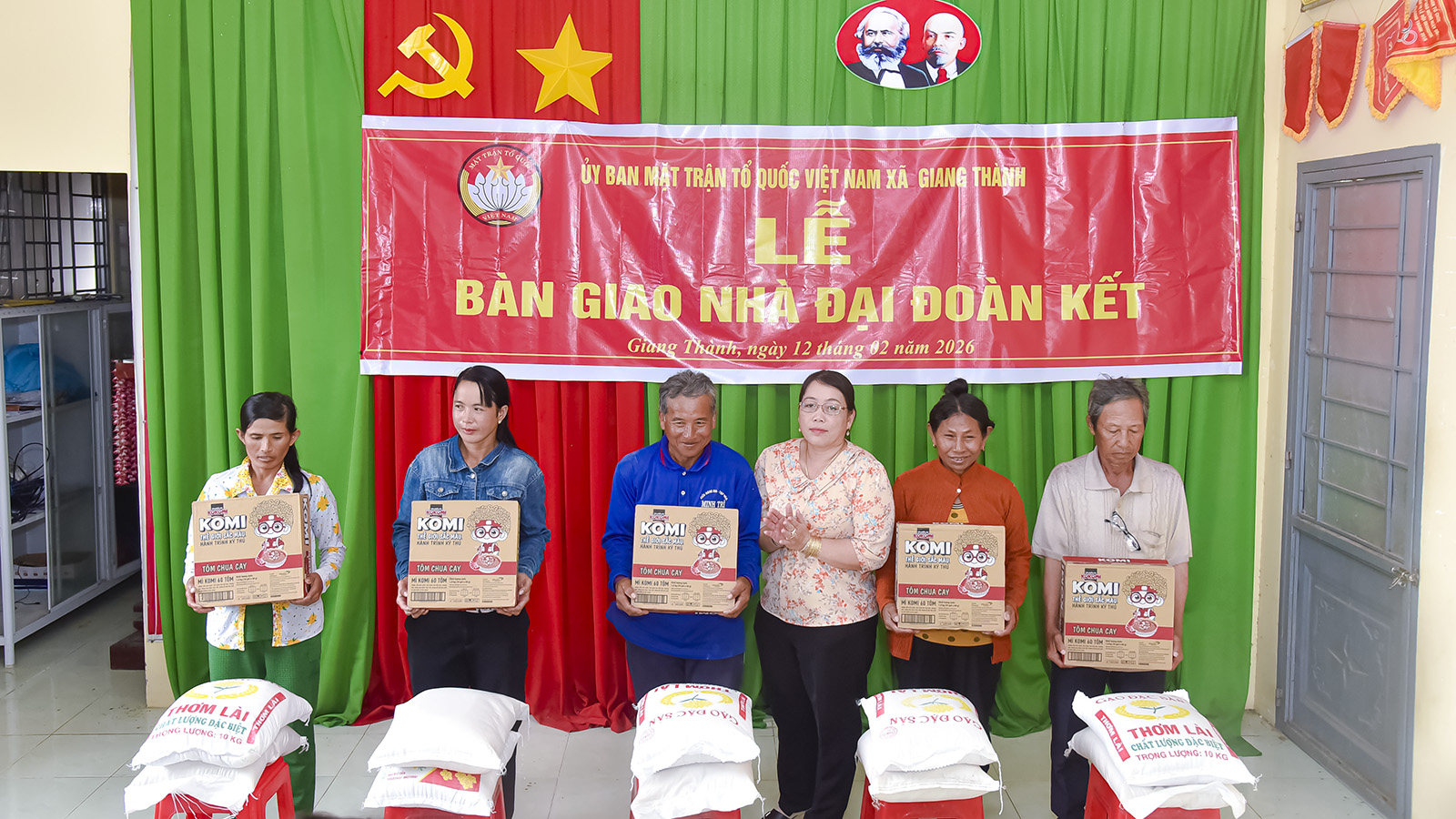 Sáng ngày 12/02, Ủy ban MTTQ Việt Nam xã Giang Thành (tỉnh An Giang) tổ chức lễ bàn giao nhà đại đoàn kết cho người dân có hoàn cảnh khó khăn về nhà ở trên địa bàn xã.